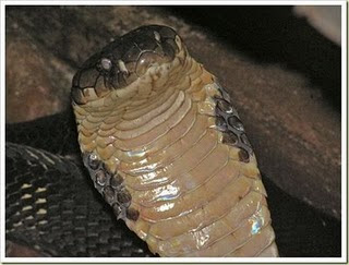 Ular king kobra (Ophiophagus Hannah) merupakan salah satu binatang yang sudah sangat jelas mempunyai racun yang beracun di dunia (secara ular king kobra gitu). Ular jenis ini dapat tumbuh sampai 5.6 m (18.5 kaki), dari bahasa latinnya saja Ophiophagus berarti ”pemakan ular”. Yup, karena ular jenis ini memang memakan ular yang lainnya untuk dapat bertahan hidup (macam ular kanibal gitu dah). Racunnya dapat melumpuhkan gajah asia dalam waktu 3 jam jika tergigit pada bagian lehernya.