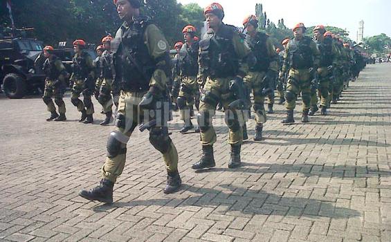 Pembukaan dan gelar pasukan latihan bersama kesigapan dan ketanggapan TNI/Polri dalam penanggulangan teror di lapangan upacara Mako Brimob Kelapa Dua, Depok, Jawa Barat, Selasa (25/10/2011) pagi.