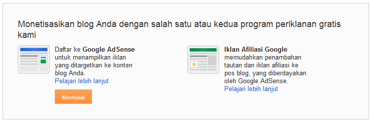 Lebih mantap lagi sekarang blogger juga menawarkan kepada para penggunanya untuk memonetize blognya dengan produk barunya, yaitu Google Affiliation Network atau Iklan Afiliasi Google. Tapi sayangnya fitur ini masih tersedia bagi warga negara AS dan Inggris saja. Tapi paling tidak ini merupakan masa depan cerah bagi semua pengguna blogger warga Indonesia nantinya.