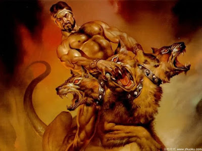 Hercules harus pergi ke dunia bawah [underworld] dan menangkap Cerberus, anjing berkepala tiga peliharaan Dewa Hades. Sebelum menghadapi Cerberus, Hercules terlebih dahulu meminta izin pada Hades untuk menangkap Cerberus. Hades mengizinkan asalkan Hercules tidak menggunakan senjata. Hercules melawan Cerberus dan berhasil mengalahkannya. Hercules lalu membawa Cerberus pada raja Eurystheus yang ketakutan begitu melihat hewan itu. Eurystheus menyuruh Hercules membawa pergi anjing itu, dia juga membebaskan Hercules dari pengabdiannya sehingga Hercules kini bebas. Setelah itu, Cerberus dikembalikan oleh Hercules ke dunia bawah, kepada Hedes pemiliknya.Sumber: http://www.indowebster.web.id/showthread.php?t=109374