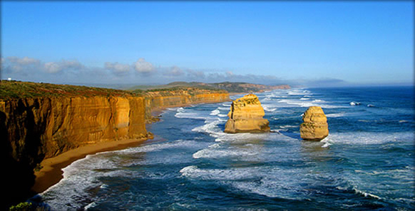 Hanya sepelemparan batu dari Melbourne, Anda bisa menemukan Great Ocean Road. Jalan sepanjang 151 mil (243 km) menghubungkan sepanjang pantai selatan Australia. Ini adalah salah satu lokasi favorit di dunia untuk melihat matahari terbenam, apalagi jika Anda berada di dekat 12 Apostles (Rasul), jejeran patahan batu kapur yang mengagumkan. Jangan lewatkan juga tur helikopter di sepanjang pantai jika cuaca mendukung, dan beberapa toko rabat perlengkapan selancar di Torquay. Ada juga area jalan kaki di hutan dekat Lorne yang menyimpan air terjun mempesona. Dan ada beberapa 'pintu masuk' menuju hutan tropis terakhir di Australia, Taman Nasional Great Otway.