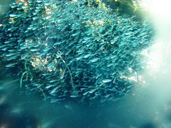 Saat saya kesana, kebetulan lapisan air tawar sedang tipis. Awak kapal menyelam dan sempat mencicipi air asin di kedalaman sekitar dua meter. Rupanya ketebalan lapisan air tawar dan air asin bisa berubah sesuai dengan pasang-surut air laut.