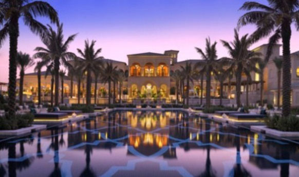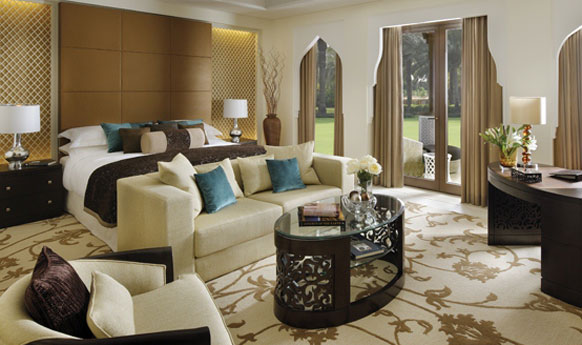 Saking banyaknya taman-taman indah di kompleks hotel serta air terjun kolam renang di sepanjang pantai, Anda pun tidak merasa perlu melihat pemandangan gedung-gedung tinggi di seberang Laut Arab