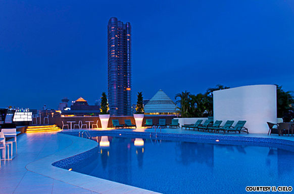 Dengan nuansa kayu berwarna gelap dan kaca, iL Cielo berada di lantai 24, di samping kolam renang sekaligus atap hotel Hilton. Tempat ini menjadi salah satu lokasi paling tenang di Orchard Road. Di sana Anda bisa bersantai menatap gedung-gedung tinggi yang membentang sepanjang Orchard dan menikmati pertemuan romantis. Selain memiliki 32 kursi yang berada di dalam ruangan, Anda memiliki kesempatan mencoba Prosecco atau hidangan penutup dengan suasana romantis di sisi kolam renang.