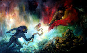 Pada saat kebudayaan manusia masih sedemikian primitif. Ketika orang masih memuja pohon agar tidak marah karena buahnya dipetikin. Ketika orang memuja arwah leluhur, memakai tengkorak leluhur sebagai bantalan kepala, mewariskan harta pusaka jimat dan tosan aji secara turun temurun. Ketika zaman masih sedemikian kleniknya.